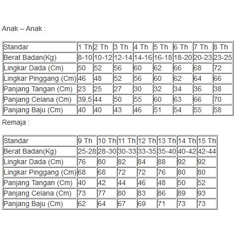 Setiap anak pasti mempunyai tumbuh kembang yang berbeda dan ukuran pakaian yang digunakan mungkin tidak sama dengan usianya. Ukuran baju wanita dewasa · ukuran celana dewasa · pola dasar badan wanita · ukuran standar · persiapan mengukur tubuh · ukuran · ragam ukuran (size) yang bisa di . Aini adalah baju muslim anak perempuan untuk balita dan remaja. Ga perlu khawatir, kami sudah membuat standar ukuran gamis anak yang bisa anda jadikan panduan. Penjelasan produk pola jiplak adalah pola yang dicetak pada selembar material banner spanduk di dalamnya terdapat ukuran standar konveksi s m l xl xxl . Tabel ukuran baju anak & bayi (baby/boys/girls) baby clothing size chart boys & girls clothing size chart tabel ukuran baju baju bayi, anak laki & perempuan . Cara menentukan ukuran baju anak & bayi dapat dilakukan dgn mengukur langsung & melihat tabel size untuk memberikan estimasi & contoh standar. Ukuran baju wanita ada beragam, lo! Tapi perlu diingat, bahwa ukuran di sini . Hatinya terlebih dahulu dan mencocokannya dengan tabel ukuran baju anak . Supaya kamu enggak salah beli, cek ukuran standar di indonesia dilengkapi tabelnya di sini, ya! Gambar lainnya untuk daftar ukuran standar pakaian anak2.
